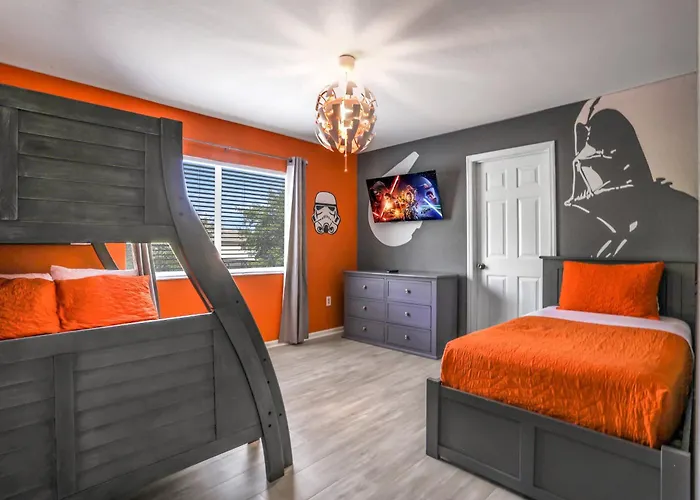 The 4-bedroom Large Cheerful Home Free Waterpark Happy Memories, located in the neighbourhood of Mystic Dunes Golf Course, invites guests to relax in an indoor pool. This accommodation boasts a location in the Celebration district and offers an indoor pool to relax at.